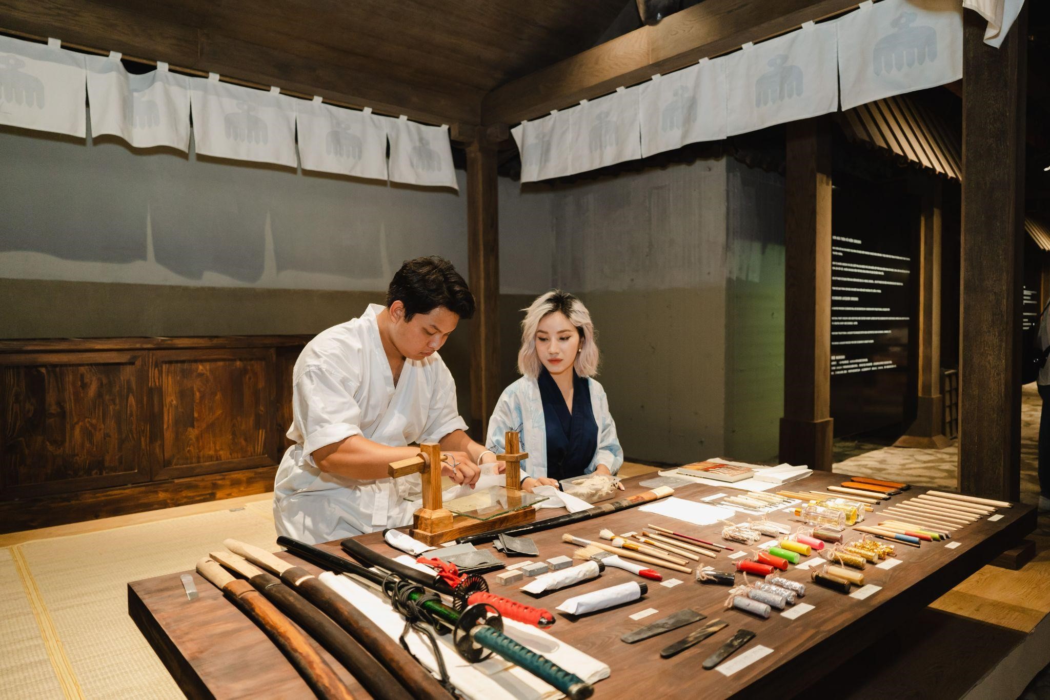 Bên cạnh kiếm Nhật, du khách còn được trải nghiệm nghệ thuật gấp giấy Origami và tận mắt chiêm ngưỡng bộ sưu tập búp bê truyền thống Nhật Bản daruma tuyệt mỹ.