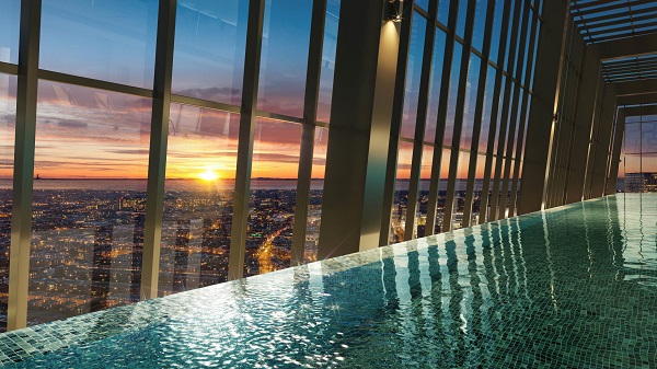 Thả mình vào làn nước trong xanh tại bể bơi vô cực trên tầng 22 của tòa tháp.