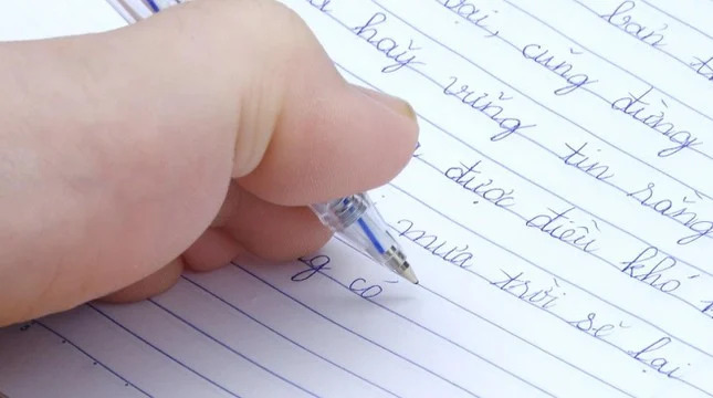 Khát khao được đến trường như các bạn, Lê Thị Thắm học cách viết bằng chân (ảnh NVCC)