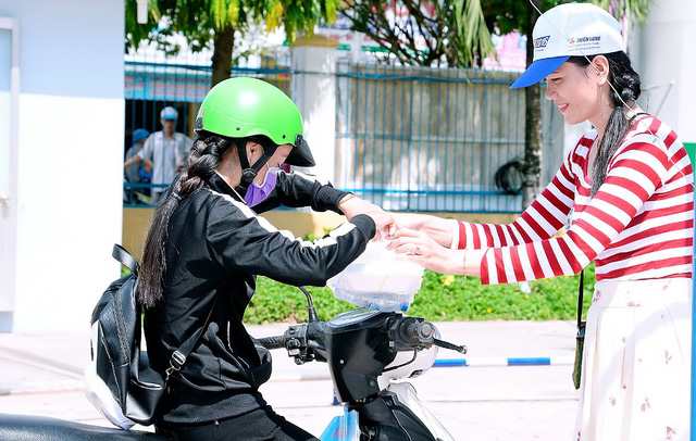 | Trong kỳ thi THPT quốc gia 2017, cô Minh Tâm vận động và trực tiếp phát cơm miễn phí cho các thí sinh tham gia kỳ thi tại tỉnh Đồng Tháp. |