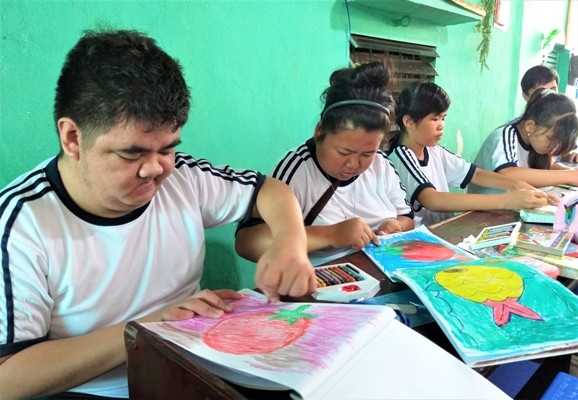 Bà Lê Thị Anh Đào (56 tuổi, ngụ xã Thanh Đức, H.Long Hồ, tỉnh Vĩnh Long) tâm sự: “Con tôi bị bệnh “đao”, tôi cho vào học lớp cô Nga đã 3 năm rồi. Lúc đầu đưa vô thì tôi cũng lo sợ con tôi không học được, nhưng nhiều người cũng khuyên nên đưa con đến học để nó lanh lợi, hiểu biết chứ để ở nhà cháu không tiếp xúc với ai rồi sinh bệnh trầm cảm nữa.