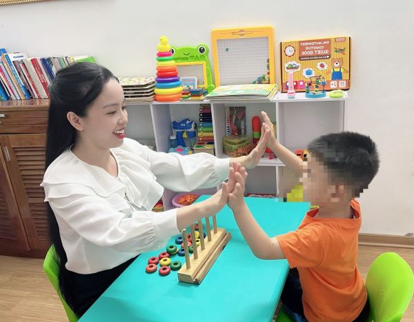 Theo cô Đỗ Thu Quỳnh, mỗi học trò mà cô dạy có những khó khăn khác nhau, có em nhạy cảm với tiếng ồn, có em sợ tiếp xúc với người lạ hoặc có những hành vi như la hét, vẩy tay… Vì vậy, giáo viên cần phải hiểu và nắm bắt tâm lý của trẻ thật tốt để biết trẻ thích và không thích điều gì, những khó khăn mà trẻ đang gặp phải để từ đó có hướng can thiệp phù hợp với từng trẻ.
