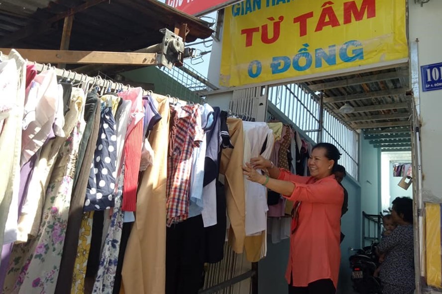 Công nhân nghèo ở quanh khu vực, hoặc có thể bất kỳ đâu, giờ nào, chỉ cần ghé cửa hàng của cô Ước, tự do chọn lựa hoặc cái áo, cái quần, hoặc giày dép chỉ với giá…0 đồng.