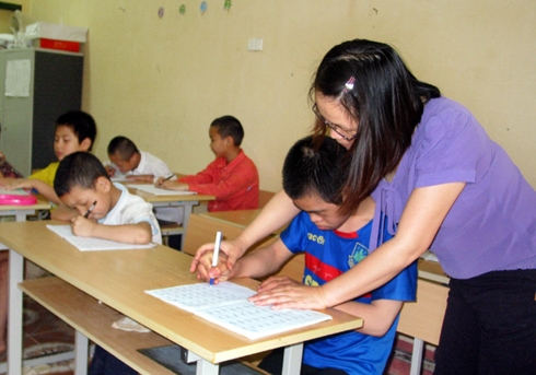 | Một tiết học tại Trung tâm Giáo dục trẻ khuyết tật (ảnh: Báo Bắc Kạn) |