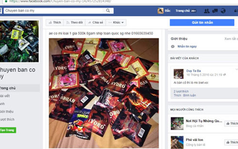 Đáng lo ngại là loại ma túy “cỏ Mỹ” lại được rao bán công khai và mua hết sức dễ dàng. Trên trang mạng xã hội facebook, rất nhiều tài khoản có vai trò như đại lý cung cấp “cỏ Mỹ” hoạt động rầm rộ với số lượng khách hàng khá lớn. Giao dịch được trao đổi ngay trên trang bán hàng.