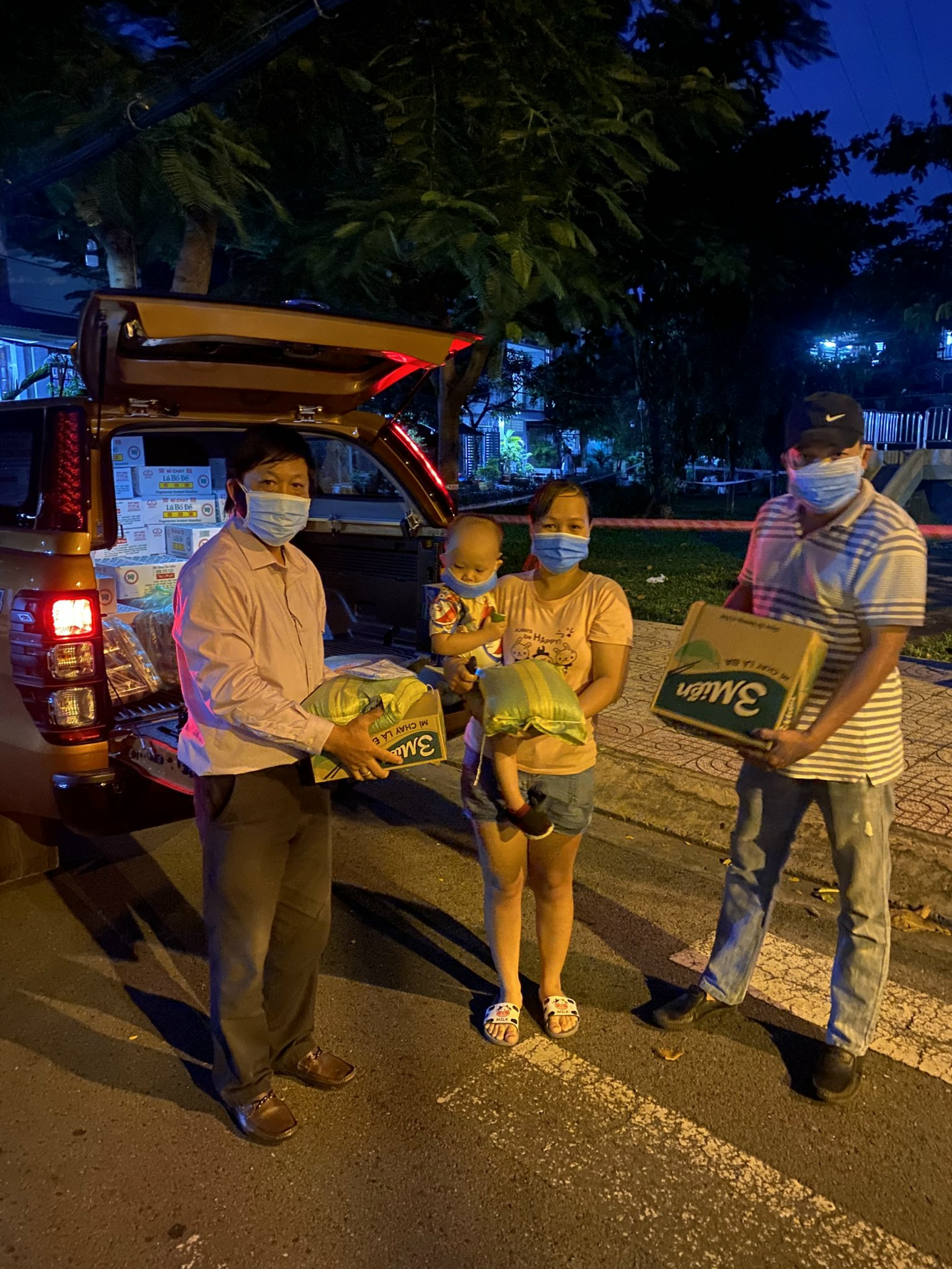 Trao quà buổi tối cho công nhân tại quận Tân Phú