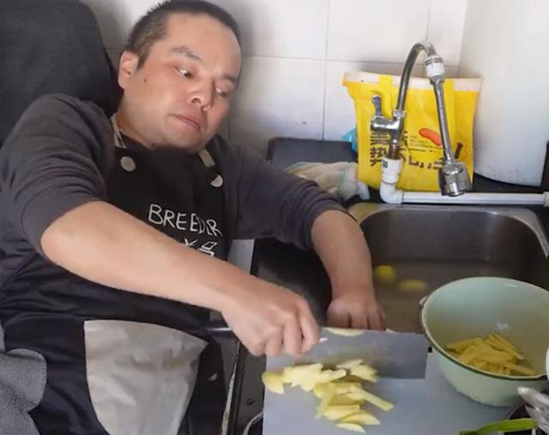 Anh Trương Hiểu Đông (SN 1984), ở thành phố Giai Mộc Tư, tỉnh Hắc Long Giang, đông bắc Trung Quốc. Bản thân anh vốn mắc bệnh viêm cột sống dính khớp vào năm 2008, cơ thể căng cứng và chỉ có thể cử động hai tay. Thế nhưng, anh Đông đang phải chăm sóc người cha già 62 tuổi đang nằm bất động trên giường.