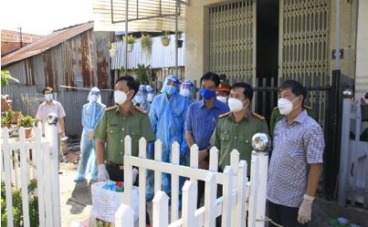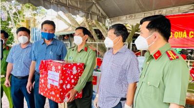 Ban Giám đốc Công an tỉnh cùng chính quyền địa phương đến thăm, tặng quà một số nhà dân trong khu vực phong tỏa.