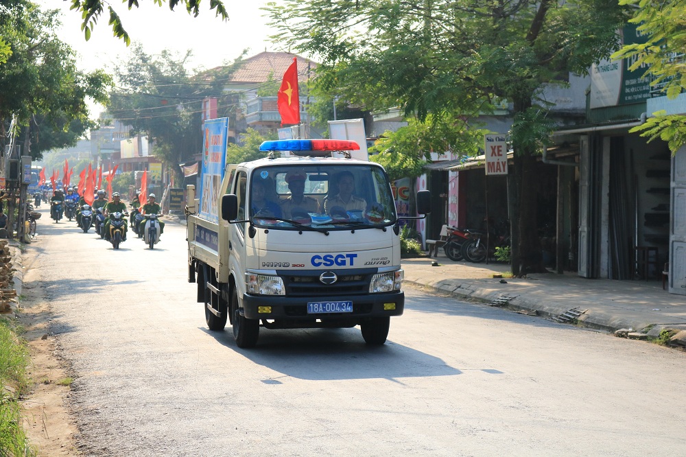 | Công an huyện Nghĩa Hưng phối hợp với các ban, ngành, đoàn thể của huyện tuyên truyền pháp luật an toàn giao thông đường bộ. |