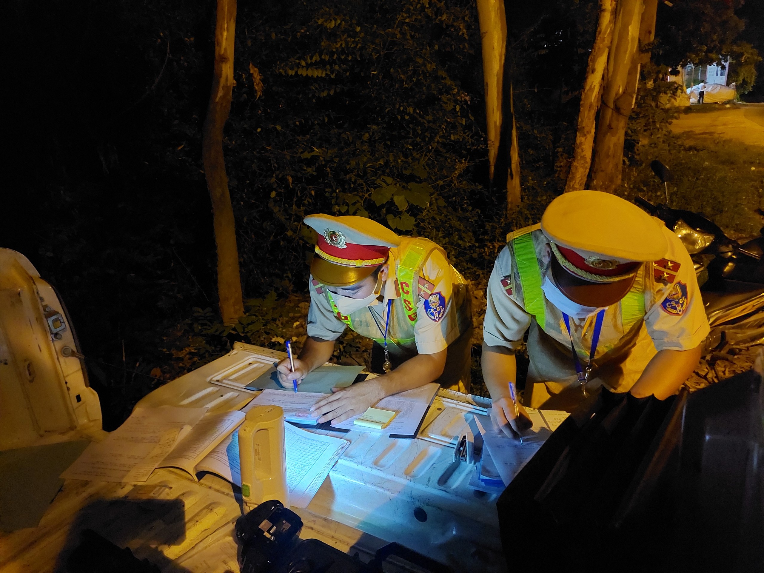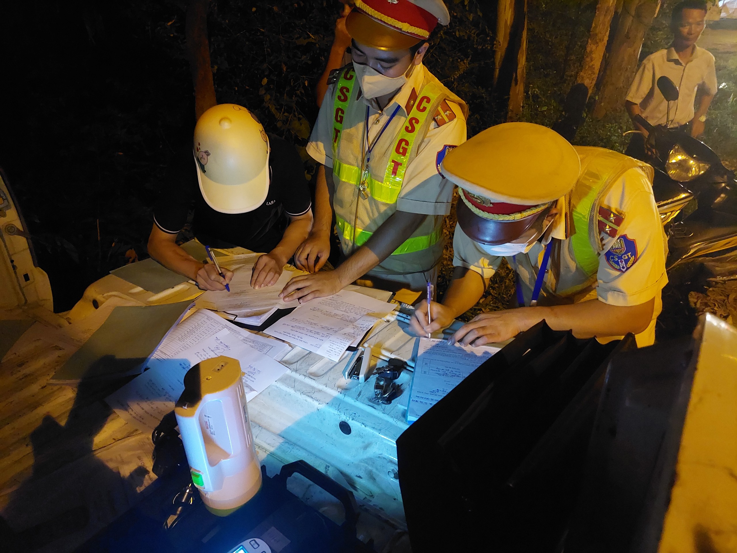 Tiếp đó, Tổ công tác tiến hành dừng xe máy 88G1- 112.xx do Doãn Văn C (SN 1982, ở Mê Linh, Hà Nội). Kết quả, kiểm tra nồng độ cồn của anh C. vi phạm 0,238 mi li gam/1 lít khí thở. Anh C cũng cho biết, mới đi liên hoan công ty về, uống ít nên rất tỉnh táo, muốn CSGT bỏ qua vi phạm hoặc “phạt tại chỗ” để tiếp tục điều khiển xe máy về nhưng không được. Sau 20 phút gọi điện thoại tìm trợ giúp nhưng không được, anh C đã quay lại kí vào biên bản vi phạm.