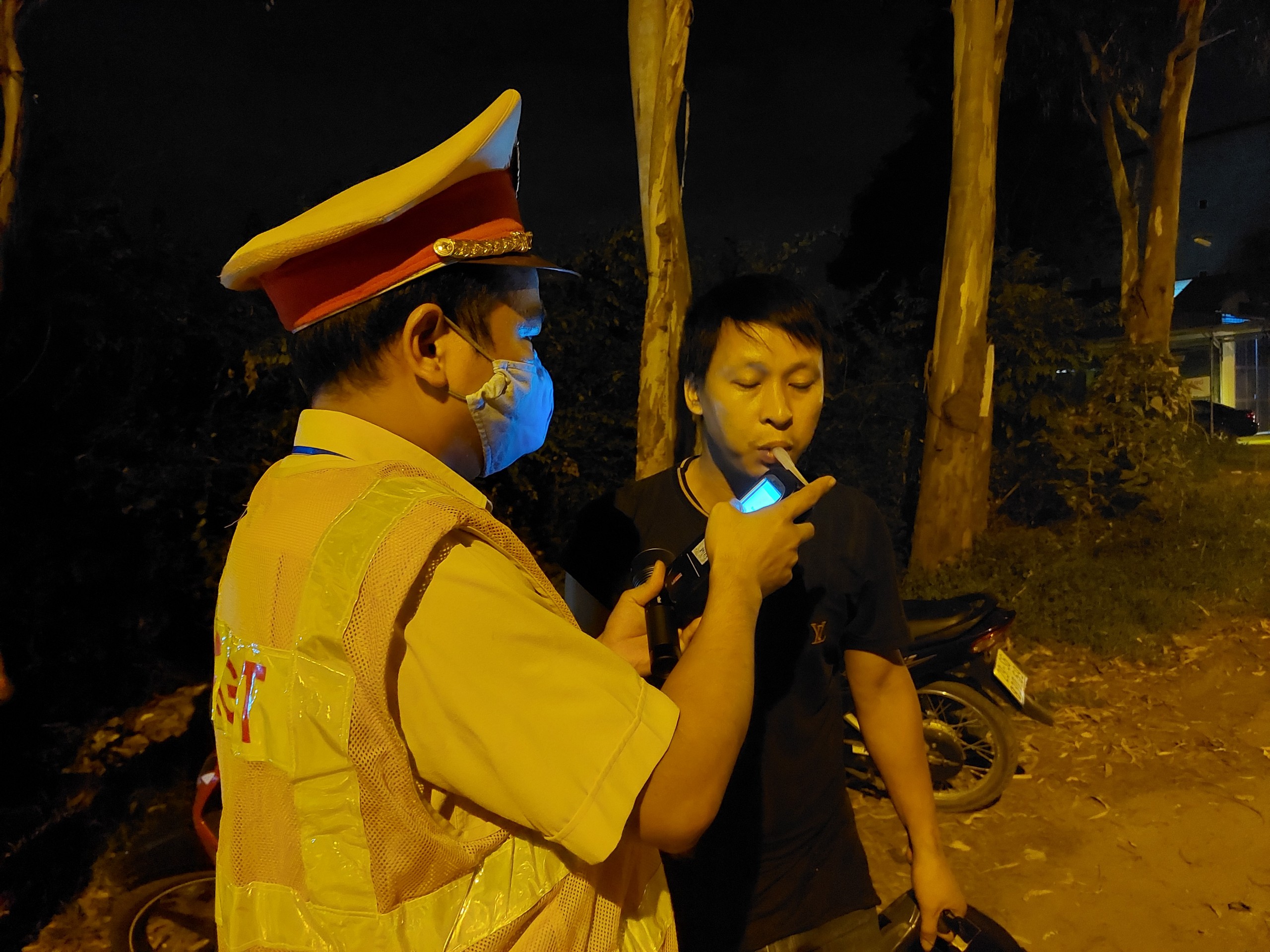 Chỉ ít phút triển khai đội hình, tổ công tác ra hiệu lệnh dừng xe máy mang BKS 29Z1 -471.xx do một người đàn ông điều khiển lưu thông hướng thị trấn Sóc Sơn về Núi đôi. Ngay sau khi dừng xe, Tổ công tác thông báo kiểm tra chuyên đề nồng độ cồn, còn người đàn ông này nói mới đi liên hoan bạn học cấp 3 nhưng miệng phả ra nồng nặc mùi "đặc trưng" của người sử dụng rượu bia.