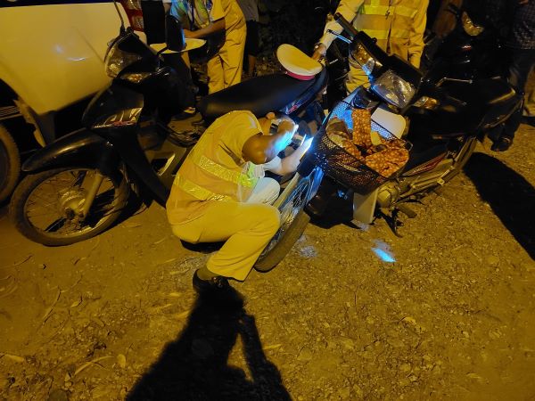 Kết quả kiểm tra nồng độ cồn, người điều khiển xe máy 29Z1- 471.xx vi phạm 0,684 mi li gam/1 lít khí thở. Ngay sau đó, danh tính người này được làm rõ là Nguyễn Văn N. (SN 1964, ở Sóc Sơn). Anh N. xin được bỏ qua vi phạm không được đã ra ngoài gọi điện thoại “tìm cứu viện” nhưng bất thành nên đã quay lại kí vào biên bản với hành vi vi phạm.