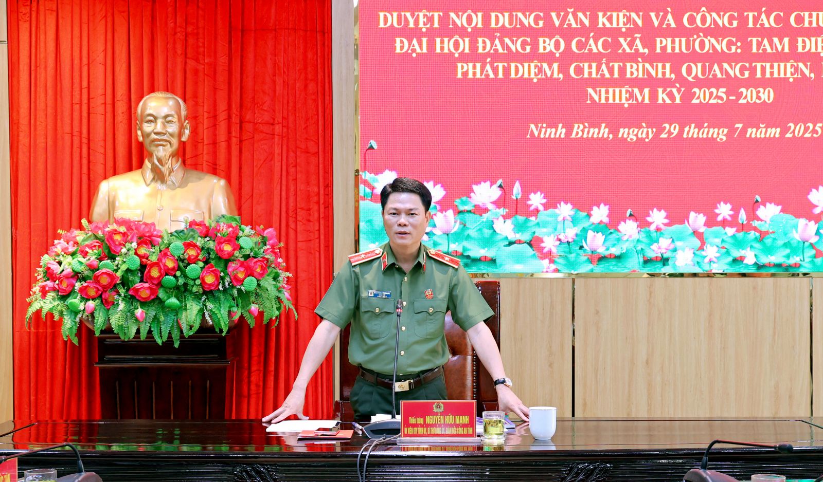 Nhấn mạnh từng Đảng bộ xã, phường cần cân nhắc, xây dựng các chỉ tiêu nhiệm kỳ phù hợp với tình hình thực tiễn của địa phương để bảo đảm hoàn thành và hoàn thành tốt các chỉ tiêu Đại hội đề ra, nhằm tạo đà bứt phá, hướng tới tương lai, phát huy tinh thần đoàn kết, trách nhiệm, thực hiện nghiêm túc quy định của Đảng, đồng chí Giám đốc Công an tỉnh tin tưởng rằng các Đảng bộ sẽ tổ chức thành công tốt đẹp Đại hội của đơn vị mình theo đúng chương trình, kế hoạch đề ra.