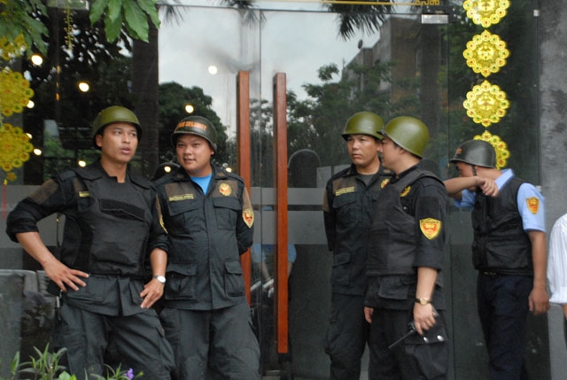 Công an TP Vinh cũng có mặt tại hiện trường nhưng… bó tay với “lực lượng vệ sỹ”.