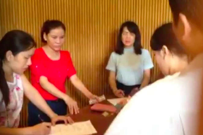 Được sự hỗ trợ của lực lượng “vệ sỹ”, nhân viên của Công ty Thương mại Nghệ An đã ngang nhiên lấy tiền của Công ty CP Đầu tư Môi trường Xanh 27/7 Nghệ An tại quầy lễ tân