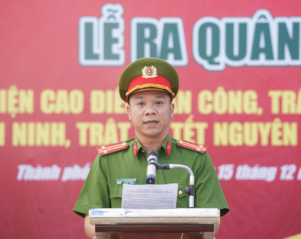 Trung tá Nguyễn Thành Hưng - Trưởng phòng Cảnh sát hình sự Công an TP Hồ Chí Minh phát biểu nhận nhiệm vụ: "Thay mặt toàn thể cán bộ chiến sỹ của Công an Thành phố, tôi xin hứa trước lãnh đạo Thành ủy, UBND, Ban Giám đốc Công an TP Hồ Chí Minh với tinh thần trách nhiệm và quyết tâm cao nhất, lực lượng Công an Thành phố nói chung và lực lượng Cảnh sát hình sự nói riêng sẽ thực hiện nghiêm túc, có hiệu quả các ý kiến chỉ đạo, quán triệt của các cấp lãnh đạo...".
