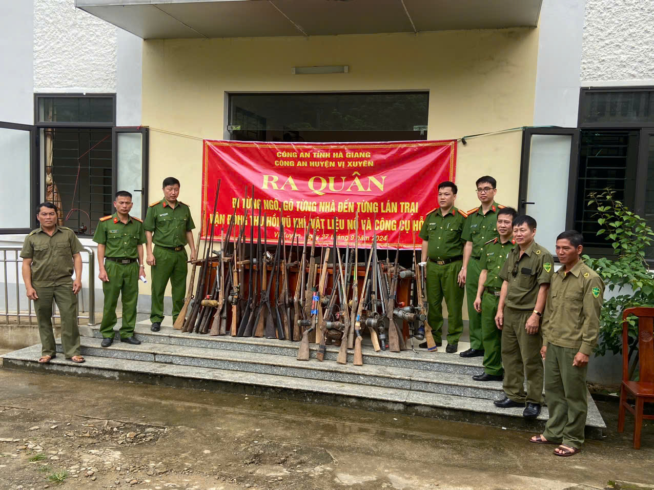 Công an xã Phú Linh (huyện Vị Xuyên, tỉnh Hà Giang) đi từng ngõ, gõ từng nhà tuyên truyền, vận động người dân thu hồi vũ khí.