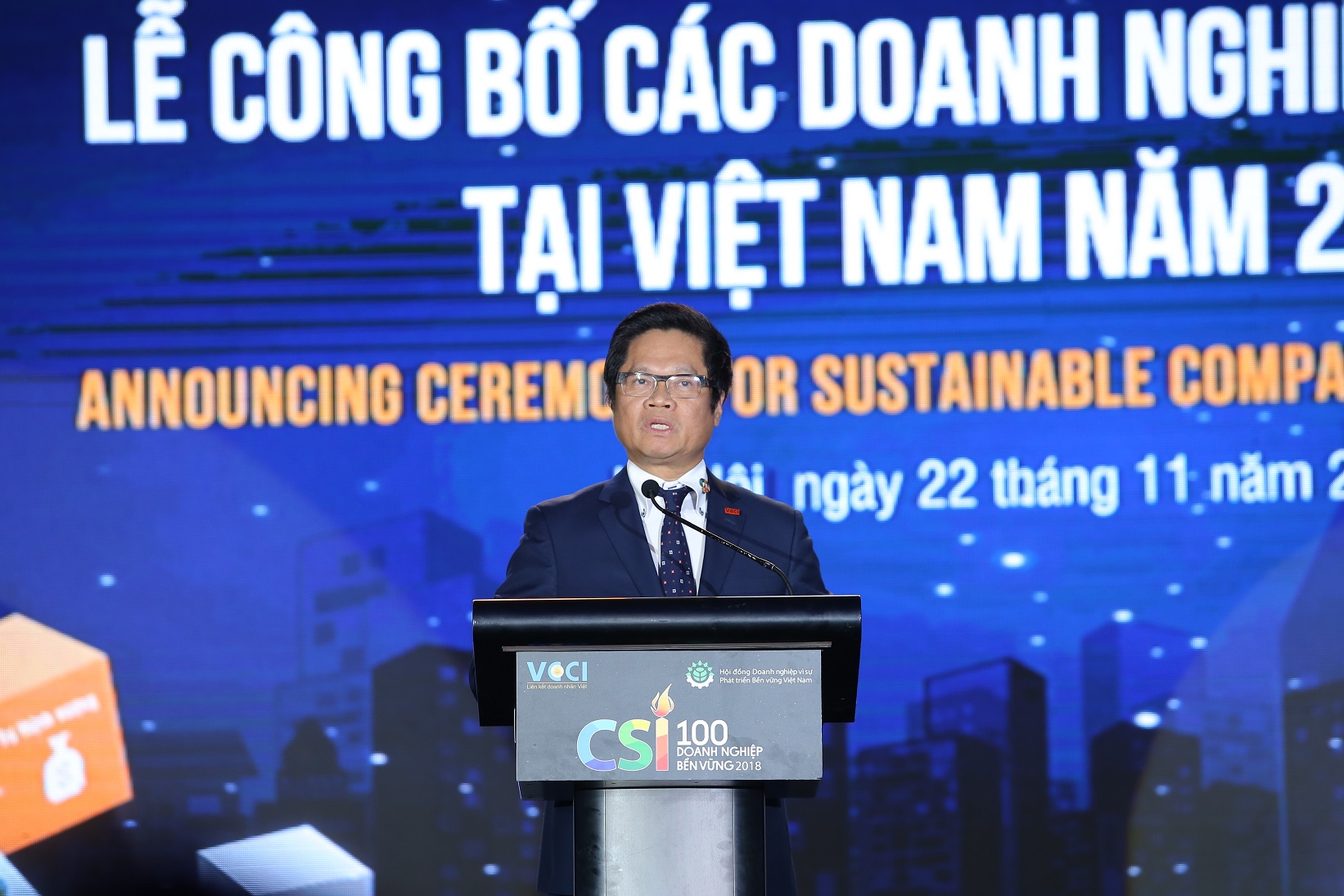 Phát biểu tại Lễ công bố, Phó Thủ tướng Chính phủ Vương Đình Huệ đánh giá cao sáng kiến của VCCI trong việc phối hợp với Bộ Tài nguyên và Môi trường, Bộ Lao động Thương binh và Xã hội… xây dựng và công bố Bộ chỉ số phát triển bền vững (CSI) với 131 chỉ tiêu để bình chọn hàng năm và vinh danh các doanh nghiệp tiêu biểu về phát triển bền vững.