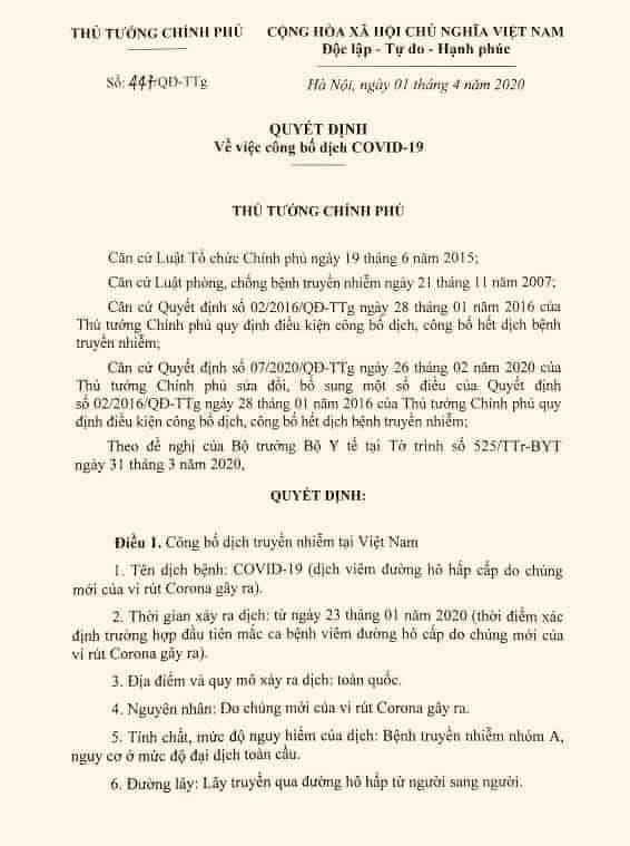 Cụ thể, Thủ tướng quyết định công bố dịch truyền nhiễm tại Việt Nam: