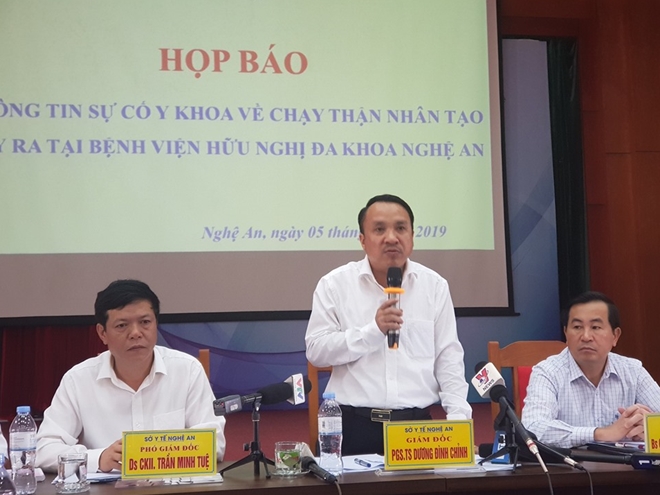 Giám đốc Sở Y tế Nghệ An Dương Đình Chính chủ trì buổi họp báo cho biết, sau khi sự cố khiến BV Hữu nghị đa khoa Nghệ An phải ngừng chạy thận, ngày 4/8 Hội đồng chuyên môn do Sở Y tế Nghệ An thành lập gồm các nhà khoa học trong tình và 2 chuyên gia từ BV Bạch Mai đã làm việc nghiêm túc, khẩn trương, khoa học, đi đến kết luận: