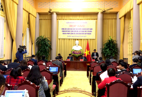 Tại họp báo, Phó Chủ nhiệm Văn phòng Chủ tịch nước Chu Văn Yêm đã công bố Lệnh số 17/2018/L-CTN của Chủ tịch nước công bố Pháp lệnh sửa đổi, bổ sung một số điều của 4 pháp lệnh có liên quan đến quy hoạch.