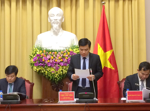 | Phó Chủ nhiệm Văn phòng Chủ tịch nước Chu Văn Yêm công bố Lệnh của Chủ tịch nước tại Họp báo. Ảnh: VGP/Nguyễn Hoàng |