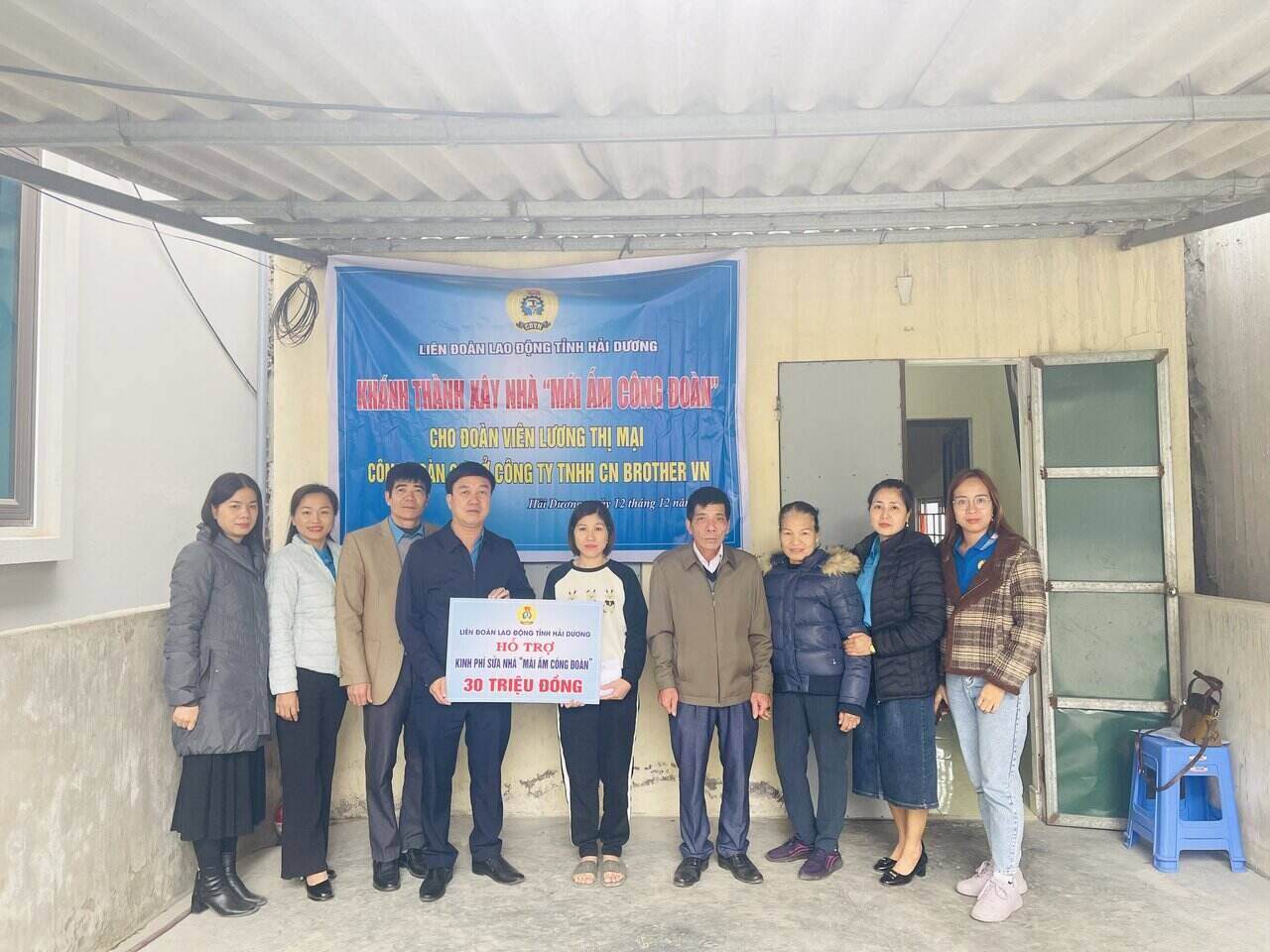 LĐLĐ Hải Dương hỗ trợ 30 triệu đồng giúp chị Lương Thị Mại sửa nhà Mái ấm Công đoàn (Ảnh: Mai Hương)