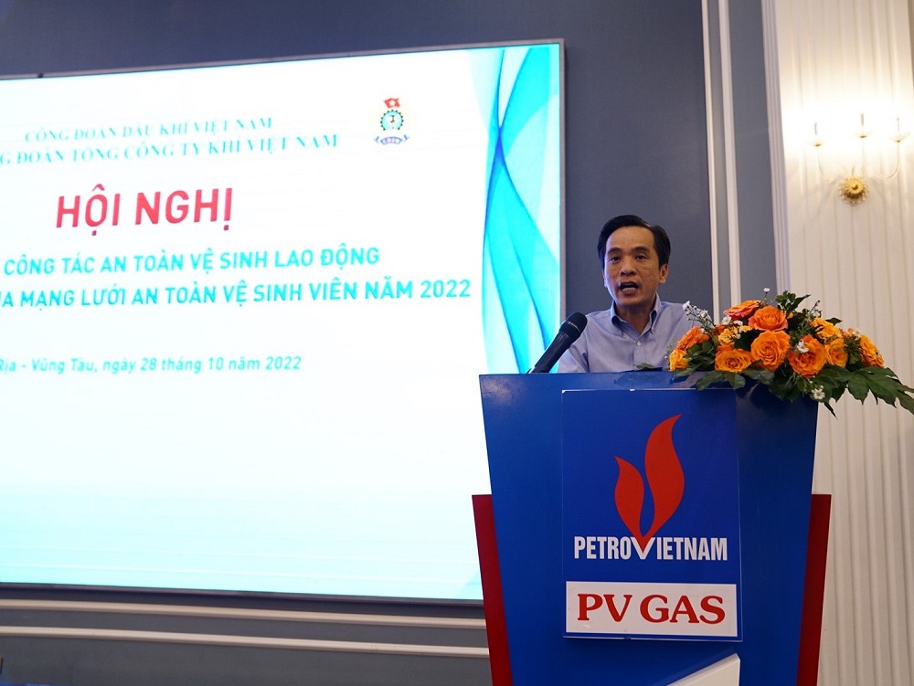 Ông Nguyễn Văn Dũng, Ủy viên Thường vụ Công đoàn, Phó trưởng ban Phong trào thi đua, phụ trách công tác ATVSLĐ đã trình bày báo cáo tổng kết công tác ATVSLĐ và hoạt động của mạng lưới ATVSV năm 2022 và kế hoạch hoạt động 2023, nêu bật những nỗ lực của công tác ATVSLĐ và mạng lưới ATVSV đã đóng góp vào thành tích chung của PV GAS.