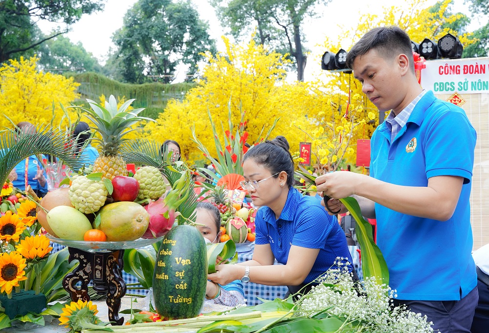 Đồng thời, Hội thi trang trí mâm ngũ quả, chủ đề “Tết Sum vầy - Nhân niềm hạnh phúc” được tổ chức với sự góp mặt của 16 đội thi. Hoạt động đã tạo nên sân chơi vui tươi, ý nghĩa cho đoàn viên công đoàn góp phần gìn giữ, làm sâu sắc thêm nét đẹp văn hóa truyền thống, nhân dịp Tết Quý Mão 2023.