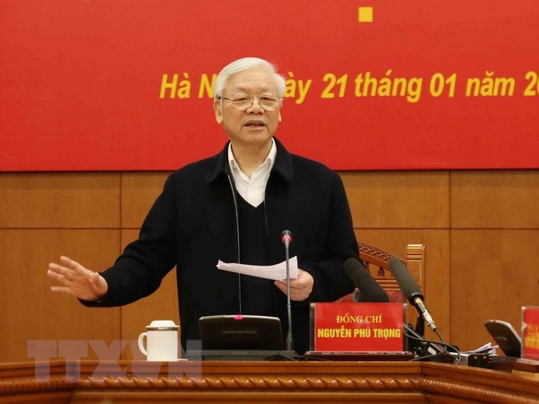 | Tổng Bí thư, Chủ tịch nước Nguyễn Phú Trọng phát biểu kết luận phiên họp. (Ảnh: Phương Hoa/TTXVN) |