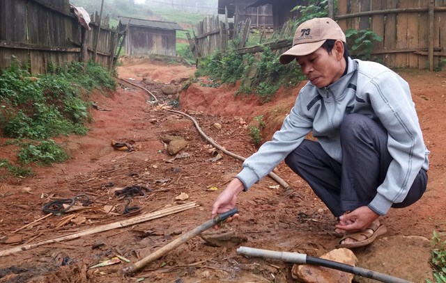 Bể không sử dụng được. Để có nước sinh hoạt, người dân đi bộ hàng trăm mét xuống các khe suối lấy nước. Một số hộ dân khác có điều kiện bắt đường ống dẫn nước trên núi xuống, nhưng do quá xa nên nước vẫn không thể chạy xuống núi.