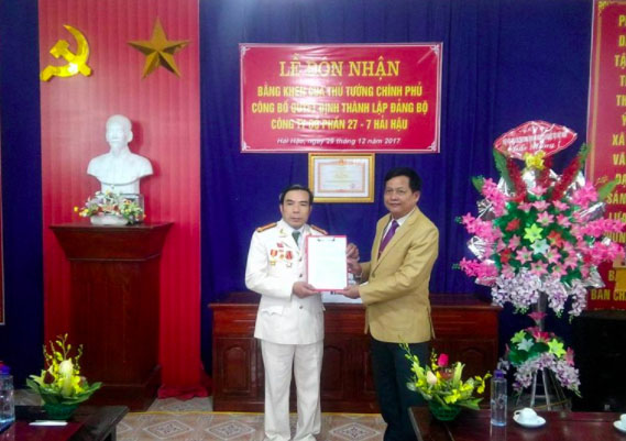 Nhân dịp này, Huyện uỷ huyện Hải Hậu, tỉnh Nam Định đã có Quyết định thành lập Đảng bộ Công ty Cổ phần 27/7 Hải Hậu, nhằm kiện toàn các tổ chức chính trị trong công ty, nâng cao năng lực lãnh đạo, thúc đẩy sản xuất kinh doanh có hiệu quả hơn.