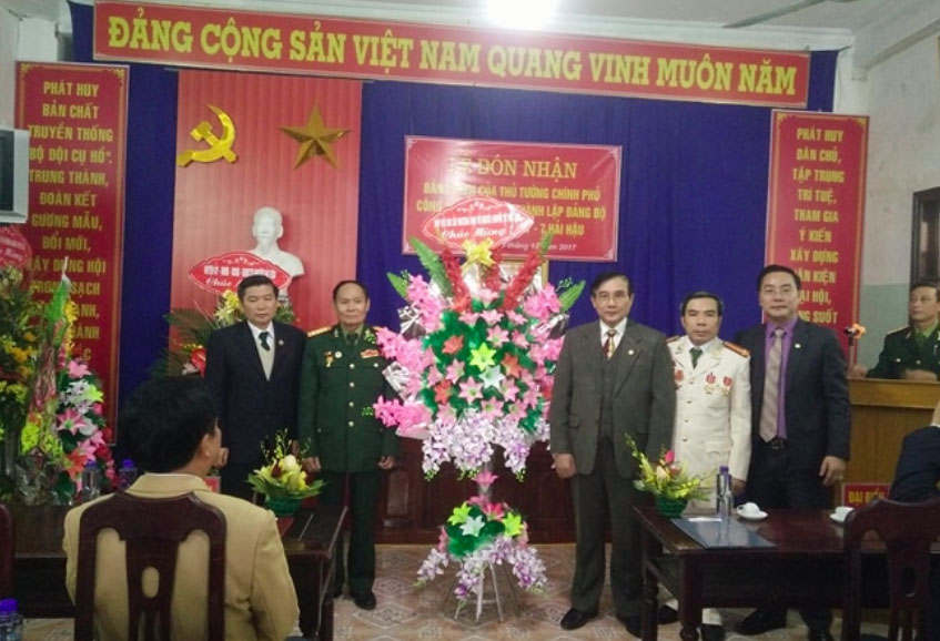 | Đồng chí Trần Văn Chinh - Phó Bí thư Thường trực Huyện uỷ Hải Hậu trao Quyết định thành lập Đảng bộ cho đồng chí Phạm Viết Roãn - Bí thư Đảng bộ |