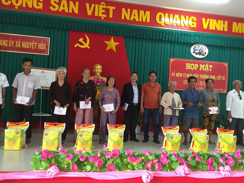 Sáng ngày 26/7/2020, tại Hội trường UBND xã Nguyệt Hóa, huyện Châu Thành, tỉnh Trà Vinh, Công ty CP thương binh 27/7 Trà Vinh đã chính quyền địa phương đã tổ chức tặng quà cho gia đình thương binh, liệt sĩ, gia đình có công với cách mạng thuộc hộ nghèo trên địa bàn xã.