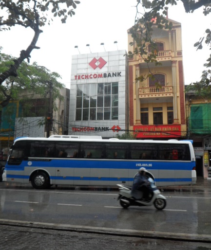 Xe chở đoàn biểu tình trước trụ sở Techcombank tại đường Trần Hưng Đạo, thành phố Nam Định, tỉnh Nam Định