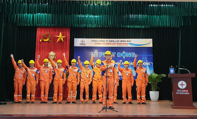 | Cán bộ Công ty Điện lực Nam Định tuyên thệ tại Lễ phát động đẩy mạnh xây dựng văn hóa an toàn lao động năm 2019. |