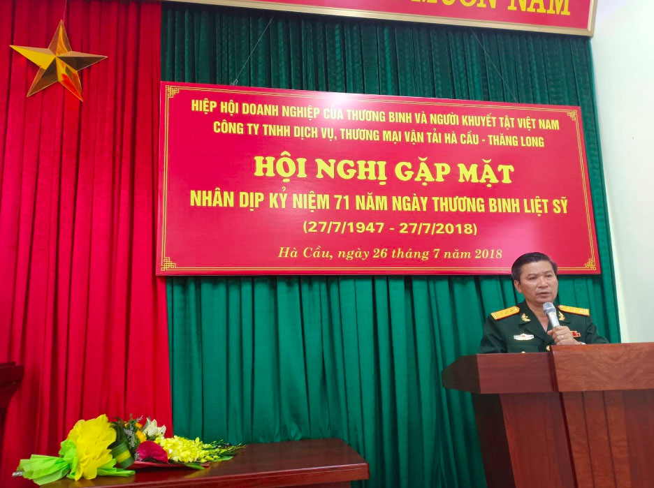 Tại buổi lễ, ông Nguyễn Văn Thốn, Giám đốc công ty TNHH Dịch vụ, Thương mại, Vận tải Hà Cầu - Thăng Long đã báo cáo với về tình hình làm việc của công ty trong thời gian qua và đời sống của cán bộ thương bệnh binh. Sau 16 năm xây dựng và trưởng thành, công ty luôn duy trì ổn định việc làm cho thương bệnh binh và người lao động, với mức thu nhập ổn định 5 triệu đồng/ tháng.