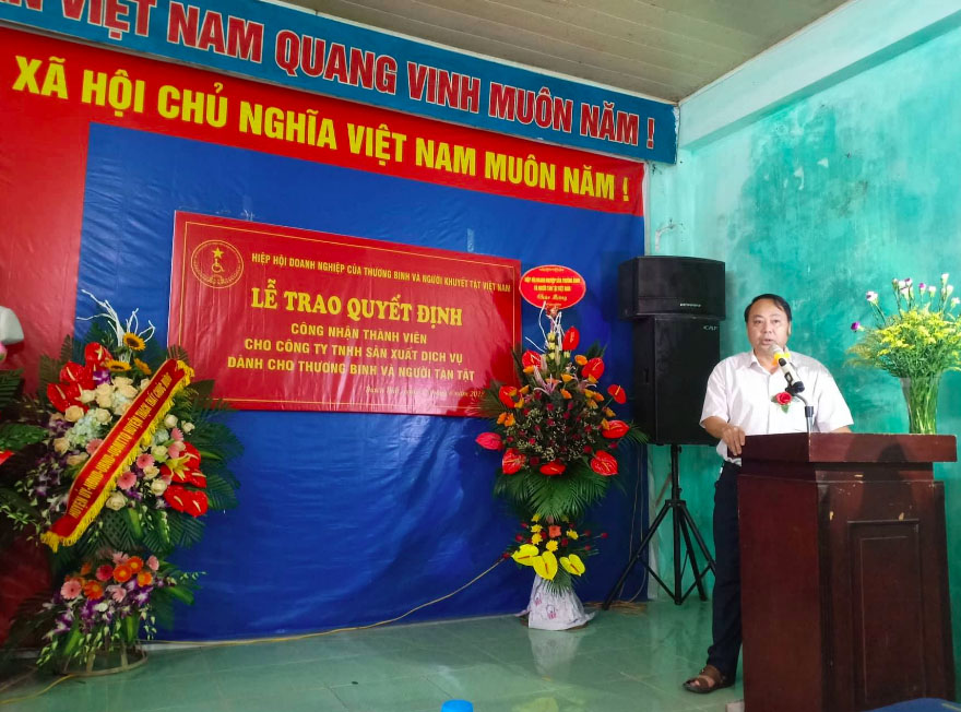 Ông Dương Minh Đỗ - Phó Chủ tịch Thường trực Hiệp hội đã thay mặt Ban lãnh đạo Hiệp hội trao quyết định cho đơn vị hội viên mới. Cũng tại buổi lễ, ông đã phát biểu biểu dương, hoan nghênh tinh thần của Công ty TNHH sản xuất dịch vụ cho thương binh và người tàn tật. Ông hy vọng trong thời gian tới, Công ty sẽ tiếp tục phát triển, đạt được nhiều thành tích và kết quả cao hơn nữa, đồng thời sẽ trở thành hội viên tích cực của Hiệp hội.