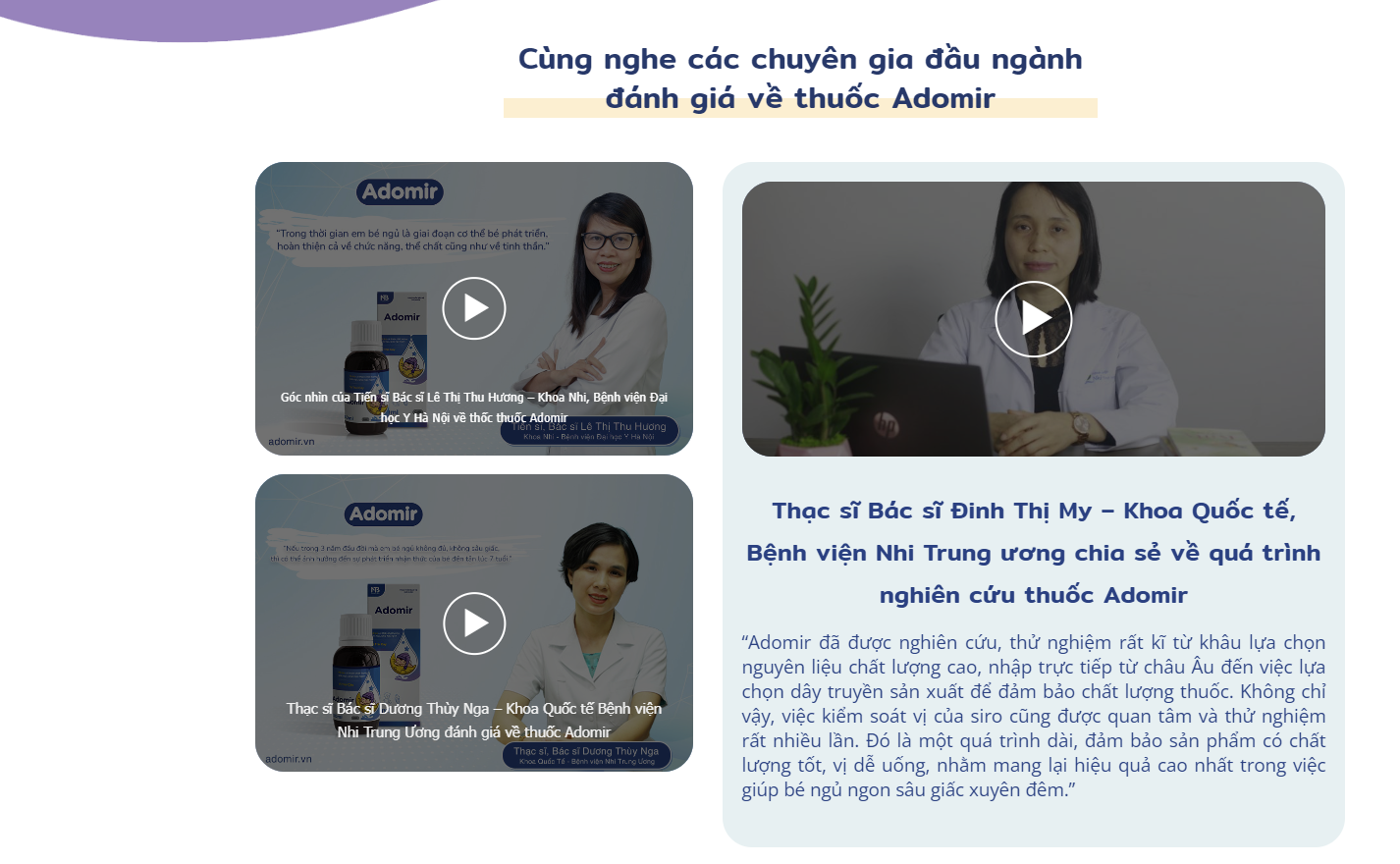 Tại khoản 2 Điều 27 Nghị định 15/2018/NĐ-CP ngày 02/02/2018 quy định chi tiết thi hành một số điều của Luật An toàn thực phẩm đã quy định: “Không sử dụng hình ảnh, thiết bị, trang phục, tên, thư tín của các đơn vị, cơ sở y tế, bác sĩ, dược sĩ, nhân viên y tế, thư cảm ơn của người bệnh, bài viết của bác sỹ, dược sỹ, nhân viên y tế để quảng cáo thực phẩm”. Như vậy, việc sử dụng hình ảnh, danh nghĩa của các đơn vị, cơ sở y tế, bác sĩ, dược sĩ, nhân viên y tế để quảng cáo cho các sản phẩm thực phẩm bảo vệ sức khỏe không phù hợp với quy định của pháp luật. Tuy nhiên trên các kênh truyền thông của sản phẩm Adomir đều cho đang sử dụng hình ảnh bác sĩ của các bệnh viện lớn cho mục đích quảng cáo sản phẩm này. Cụ thể trên các kênh truyền thông của sản phẩm Adomir đang sử dụng hình ảnh của Thạc sĩ, Bác sĩ Đinh Thị My – Khoa Quốc tế, Bệnh viện Nhi Trung ương, Thạc sĩ, Bác sĩ Dương Thùy Nga – Khoa Quốc tế Bệnh viện Nhi Trung Ương, Tiến sĩ Bác sĩ Lê Thị Thu Hương – Khoa Nhi, Bệnh viện Đại học Y Hà Nội để quảng bá cho thực phẩm chức năng này.
