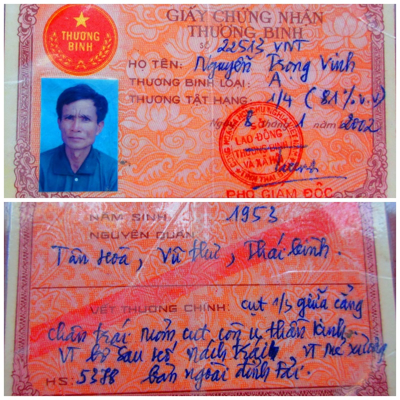 Giấy chứng nhận thương binh của ông Nguyễn Trọng Vinh