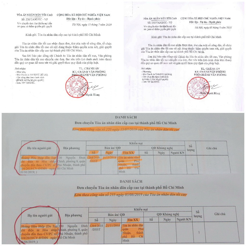 Sau khi nhận được công văn và đơn do Tạp chí điện tử Hòa nhập chuyển đến, ngày 15/7/2019, TL. Chánh án, KT. Chánh Văn phòng, Phó Chánh Văn phòng TAND tối cao Trần Mạnh Hùng đã có công văn số 220/TANDTC-VP V/v: Chuyển đơn thư khiếu nại đến cơ quan có thẩm quyền giải quyết đến Tòa án nhân dân cấp cao tại thành phố Hồ Chí Minh.