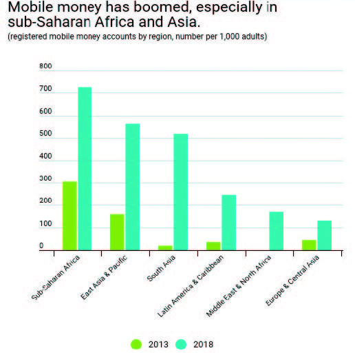 Số lượng đăng ký tài khoản sử dụng Mobile Money ở các khu vực trên thế giới (đơn vị tính số lượng trên 1.000 người trưởng thành) (Nguồn: IMF)