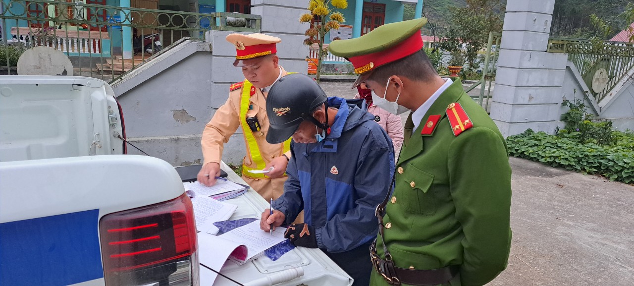 Tổ công tác của Đội CSGT - TT Công an huyện Mèo Vạc đang xử lý chuyên đề nồng độ cồn đối với người điều khiển phương tiện.