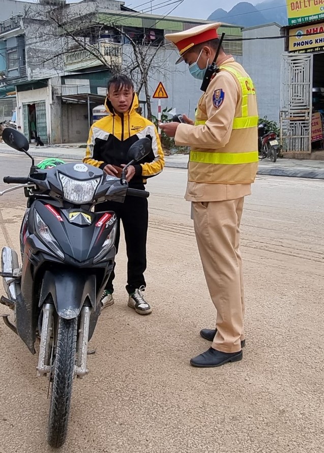 Để đảm bảo ATGT trên những cung đường vào tới huyện, Đội CSGT-TT Công an huyện Đồng Văn các cán bộ chiến sỹ CSGT chốt tại các nút giao thông trọng điểm để kiểm tra, nhắc nhở, xử lý vi phạm quy định về nồng độ cồn và các vi phạm khác đối với người điều khiển phương tiện cơ giới đường bộ khi tham gia giao thông.