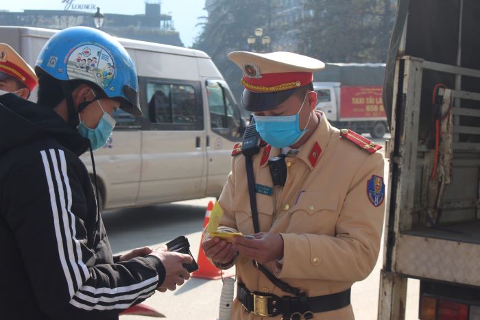 Sau khi kiểm tra giấy tờ, Đại úy Lương Ngọc Minh đã tuyên truyền các quy định của pháp luật về TTATGT đến lái xe; nhằm nâng cao ý thức tự giác chấp hành các quy định của pháp luật về TTATGT của người tham gia giao thông.