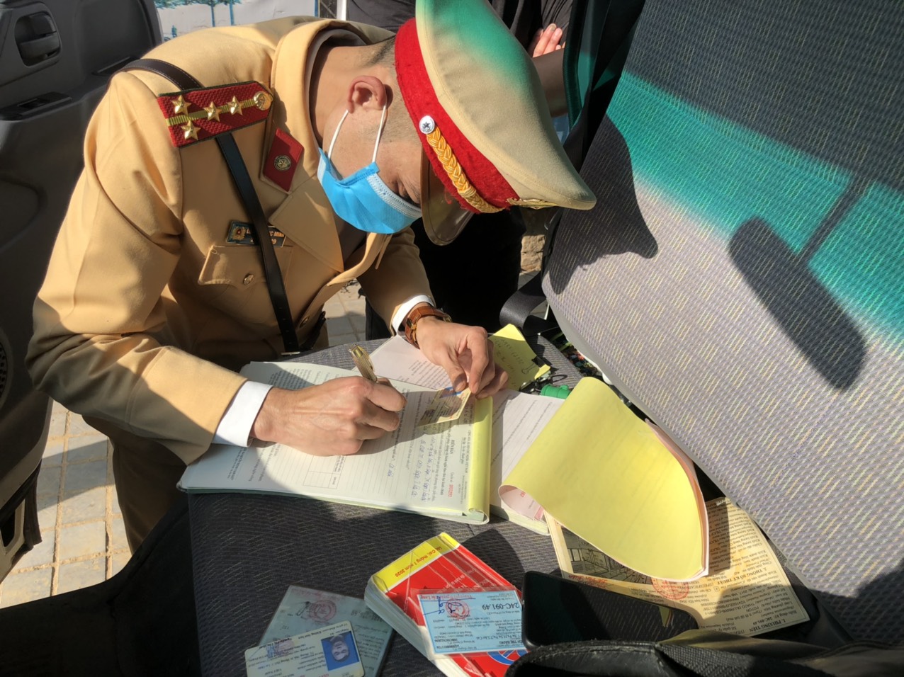 Tổ công tác đã tiến hành lập biên bản xử phạt lỗi lái xe không thắt dây an toàn.