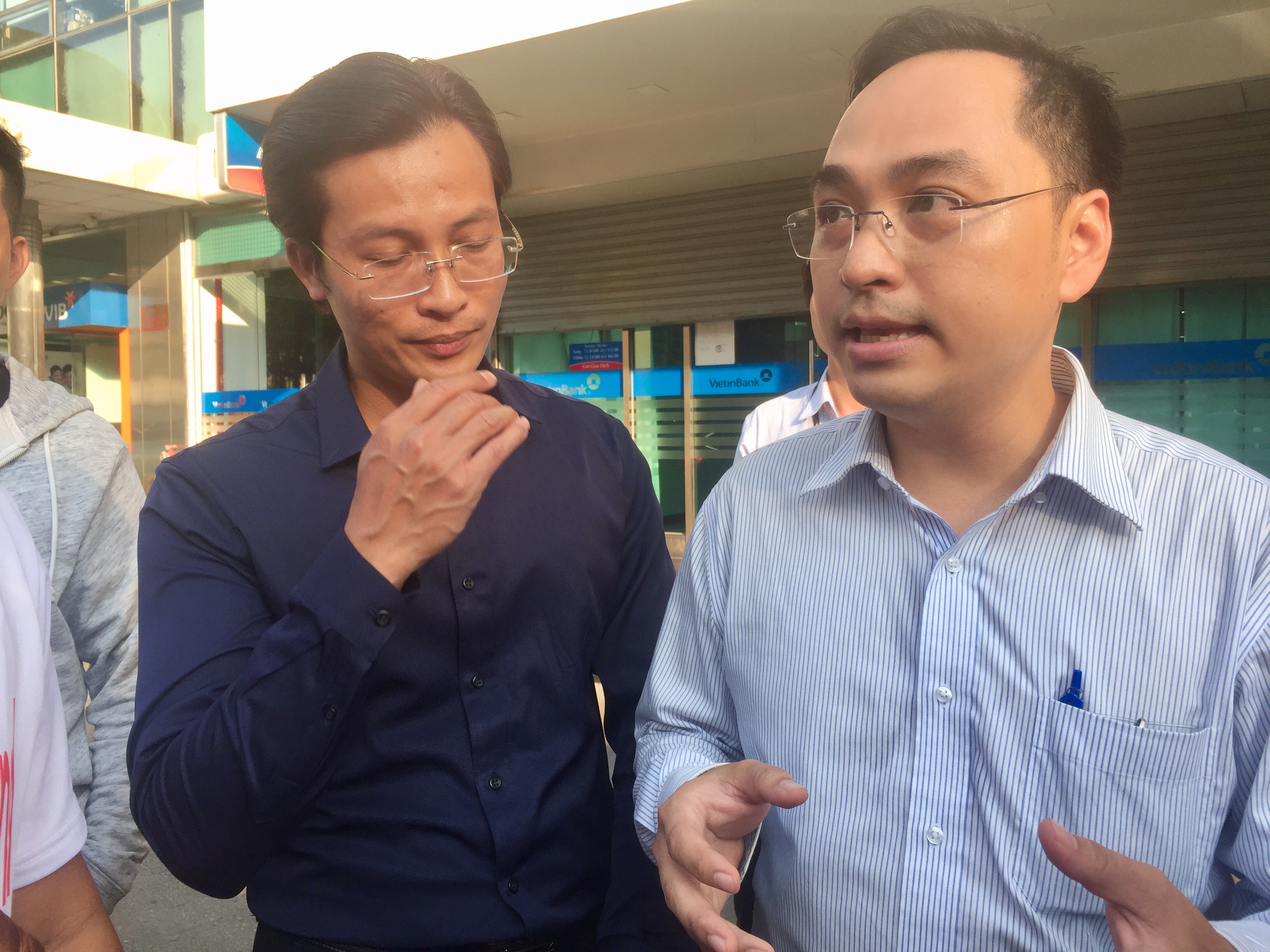 | Luật sư Lâm (trái) và ông Lương Thế Bảo (phải) – người trực tiếp ký hợp đồng bán căn hộ cho của Novoland cho cư dân The Botanica . |