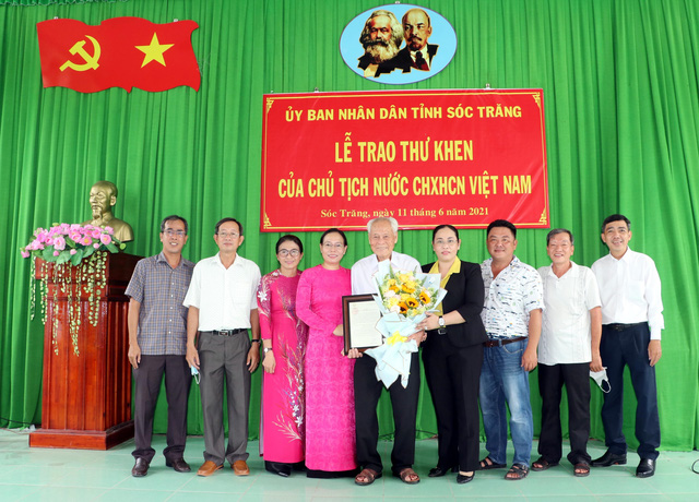 Cụ Cang được Chủ tịch nước trao tặng bằng khen (Ảnh: TTXVN)