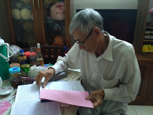 | Dù trí nhớ đã giảm, tay chân cũng chậm hơn, nhưng ông Lê Văn Xê vẫn ngày ngày truy tìm tri thức. |