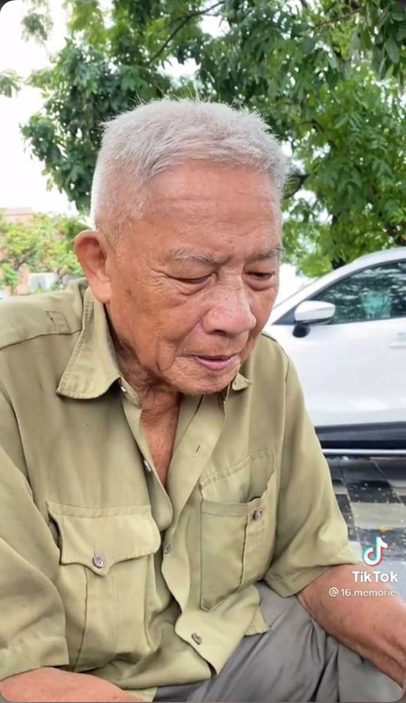 Cụ ông nhờ một bạn tiktoker chụp ảnh mình với mong ước sẽ tìm gặp được ân nhân (Ảnh: Tài khoản 16.Memories)